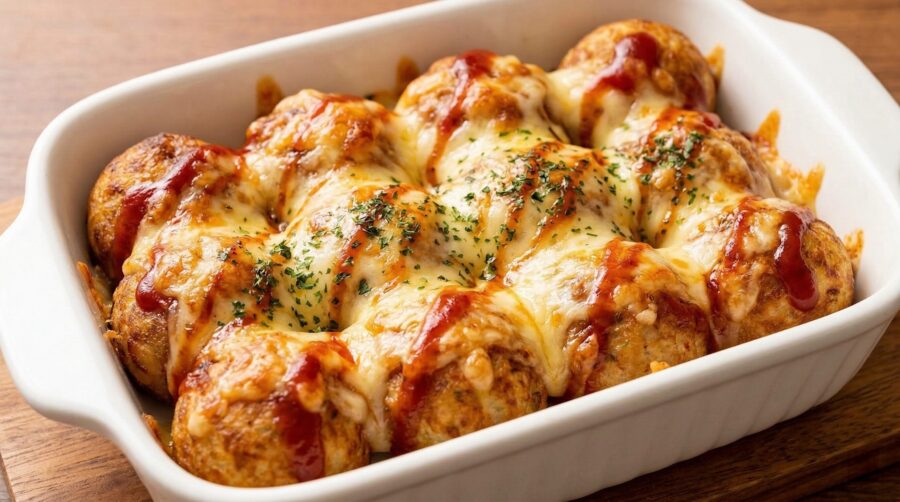 チーズがトロ〜リとろけたたこ焼きグラタンは、お子さんのおやつにも、お酒のおつまみにもぴったり。和と洋の融合が新鮮です。