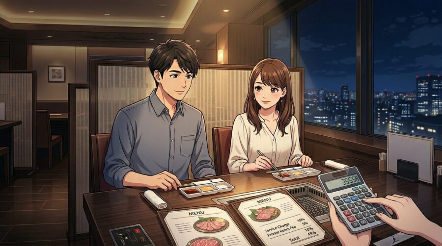叙々苑で食事をする際、メニュー表の合計金額がそのまま支払い額になるわけではありません。サービス料と個室料が別途加算される仕組みを理解しておくことが、会計時に慌てないための重要なポイントです。